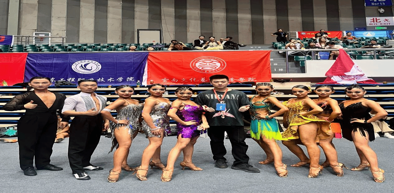 我校体育舞蹈代表队经过5至7轮的激烈角逐,最终获得2金、2银、1铜和5个第四名、2个第五名、3个第六名、4个第八名的优异成绩,并获得体育道德风尚奖,表现出舞蹈表演专业学生扎实的专业功底。此外薛浩天做为带队教练员获得优秀教练员称号,体现了了师大教师队伍的风采!