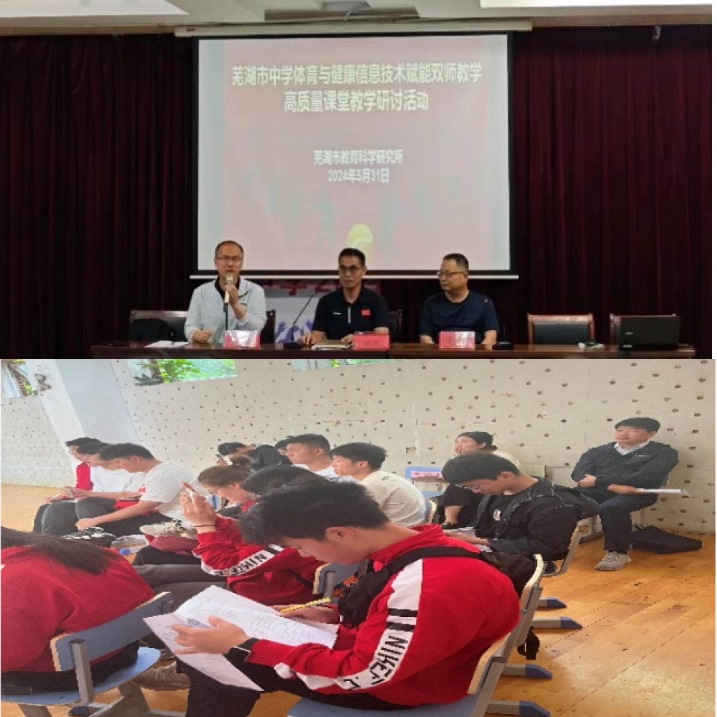 5月31日,学院组织师生参加了在芜湖市二十九中华强校区举行的以“体育与健康信息技术赋能双师教学”为主题的教研活动。此次活动由芜湖市教育科学研究所主办,吸引了众多中小学校体育教研员、骨干教师积极参加,共同探讨现代信息技术在体育教学中的应用前景。来自二十九中的两位优秀体育教师向大家展示精品课程及教学理论,同学们深刻感受到了优秀教师们的执教风采和体育教学的魅力,从中汲取了宝贵的经验和教学智慧。