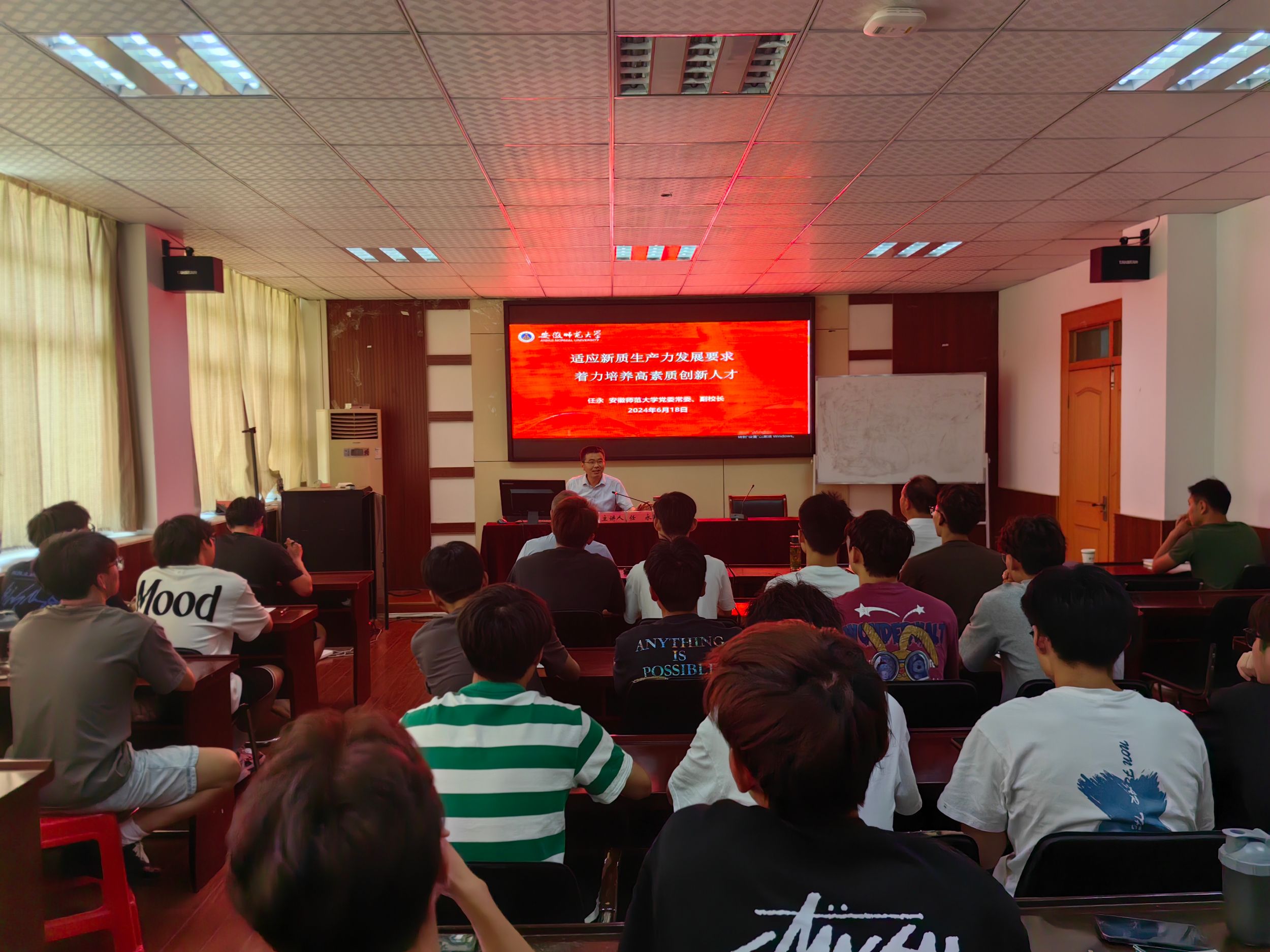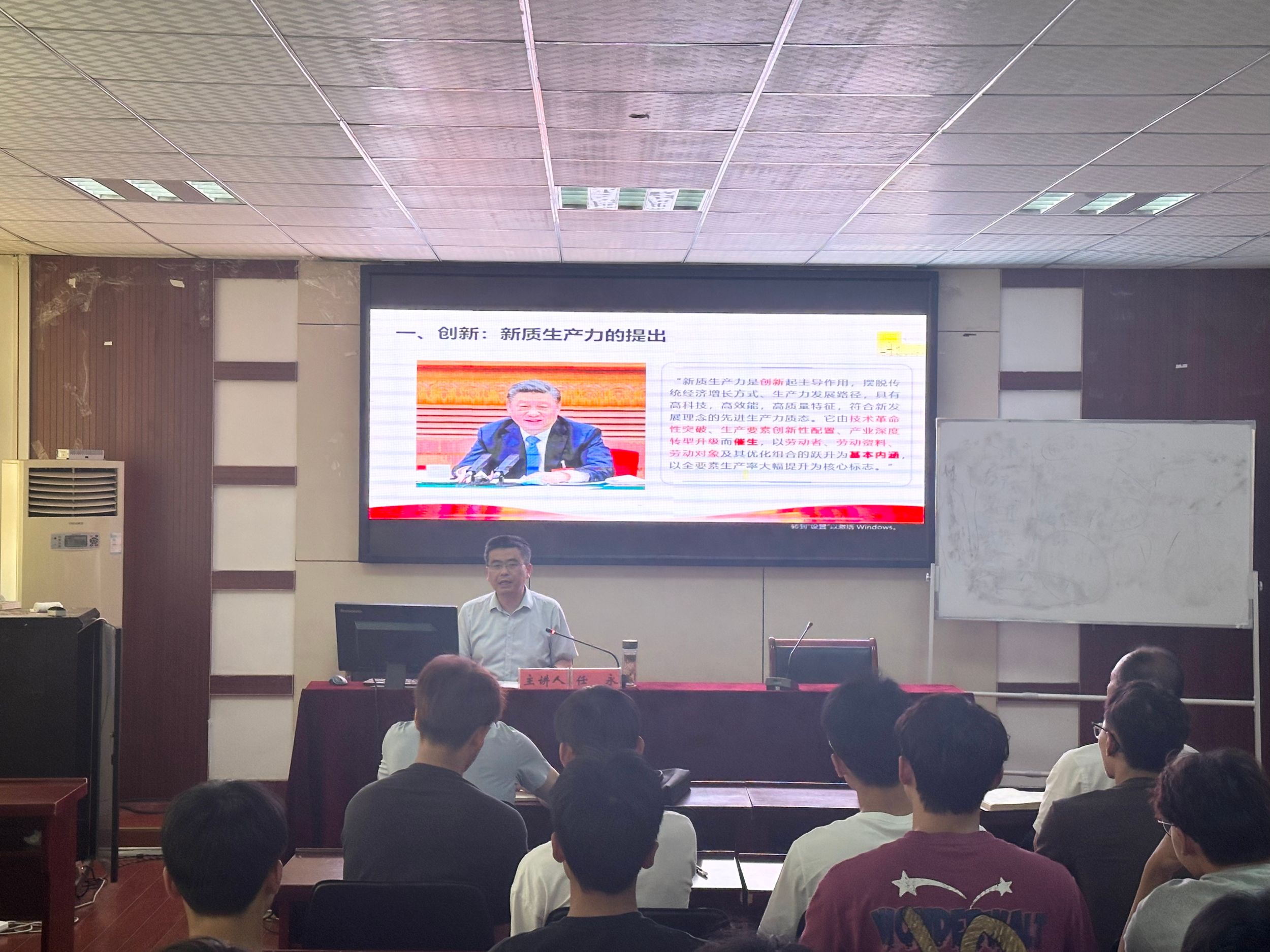 任永以《适应新质生产力发展要求,着力培养高素质创新人才》为主题,围绕着“新质生产力的提出、什么是生产力、何为新质生产力、新质劳动者培养”这四个方面展开授课。他指出,“新质生产力”是马克思主义生产力理论的创新和发展,凝聚了党领导推动经济社会发展的深邃理论洞见和丰富实践经验。“新质生产力”概念的提出是对马克思主义生产力理论的继承与发展,是对“科学技术是第一生产力”重要论述的深化,是习近平经济思想的最新理论成果。任永结合437ccm必赢国际版学科设置与学生特点,鼓励体院学子积极进取,发挥专业所长,为学校“三大行动计划”贡献青春力量,为建设体育强国添砖加瓦。