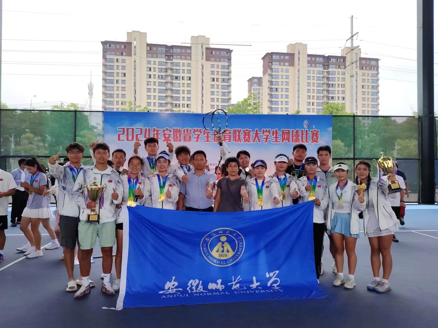 本网讯 2024年6月17-25日,由安徽省教育厅、安徽省体育局主办,安徽省学校体育协会网球分会举办的2024年安徽省学生体育联赛大学生网球比赛在天长中学进行,本届赛事共有甲、乙、丙组共计48所高校、396名运动员参赛,创历史新高。