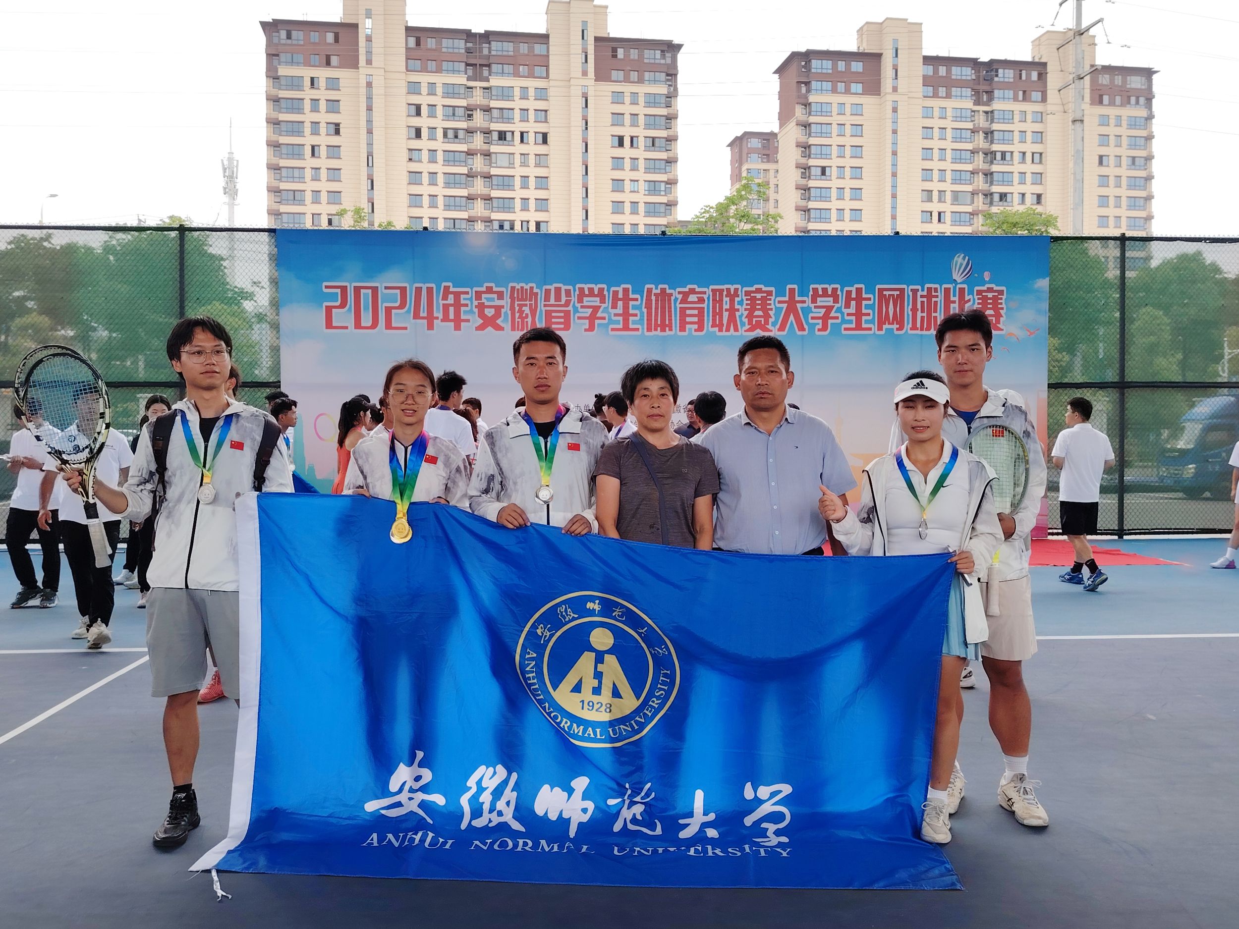 bwin必赢线路检测网球队由院长金涛担任领队,高守东、贝迎九和张楠三位老师担任教练,来自各学院的15名同学为参赛运动员,分别参加了甲组(非体育类)和丙组(体育类)两个组别的比赛。经过9天的激烈角逐,我校网球队获得甲组2枚银牌、2个三等奖,丙组包揽7枚金牌和3枚银牌,并荣获“体育道德风尚奖”。