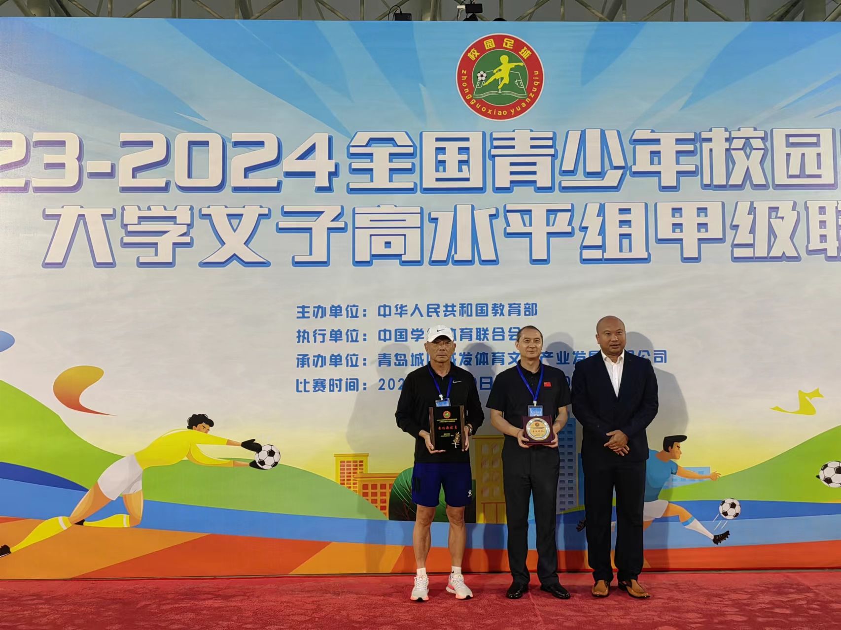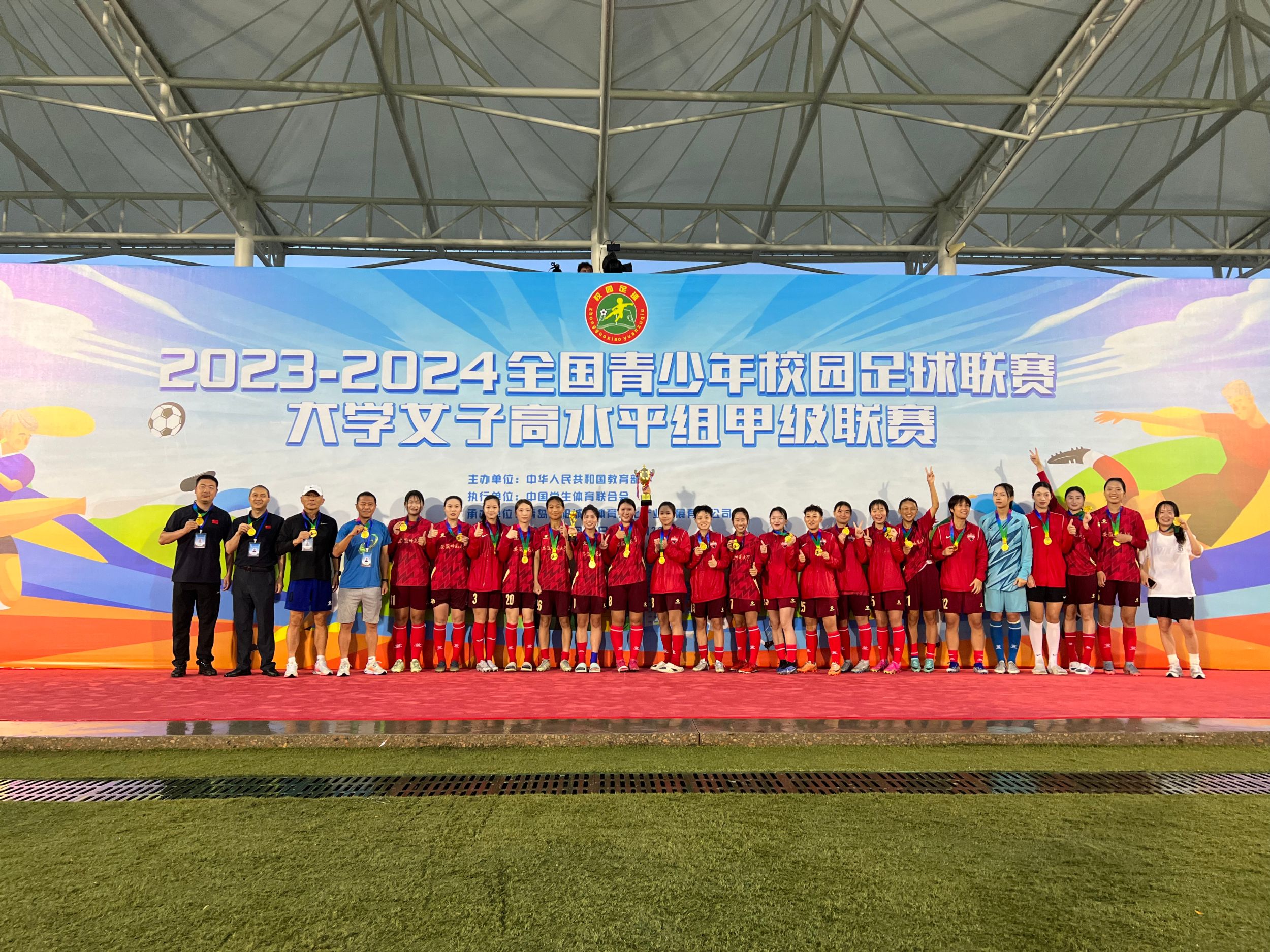 6月22日-29日,2023-2024全国青少年校园足球联赛大学女子高水平组甲级联赛在青岛白沙湾足球基地开赛。来自浙江大学、武汉437ccm必赢国际版、湖南师范大学等全国12所高校的300余名运动员展开为期10天的激烈角逐,我校女子足球队一路过关斩将,勇夺本次赛事桂冠,这是安徽省高校参加此项赛事的最好成绩。领队黄德春、主教练李伟勇、队员方潇潇分别荣获最佳领队、最佳教练员、最佳球员荣誉称号。