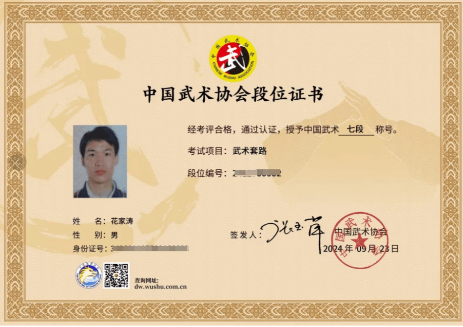 日前,国家体育总局武术运动管理中心、中国武术协会于2024年9月19日公布,批准我院教师花家涛教授晋升中国武术段位制高段位七段。