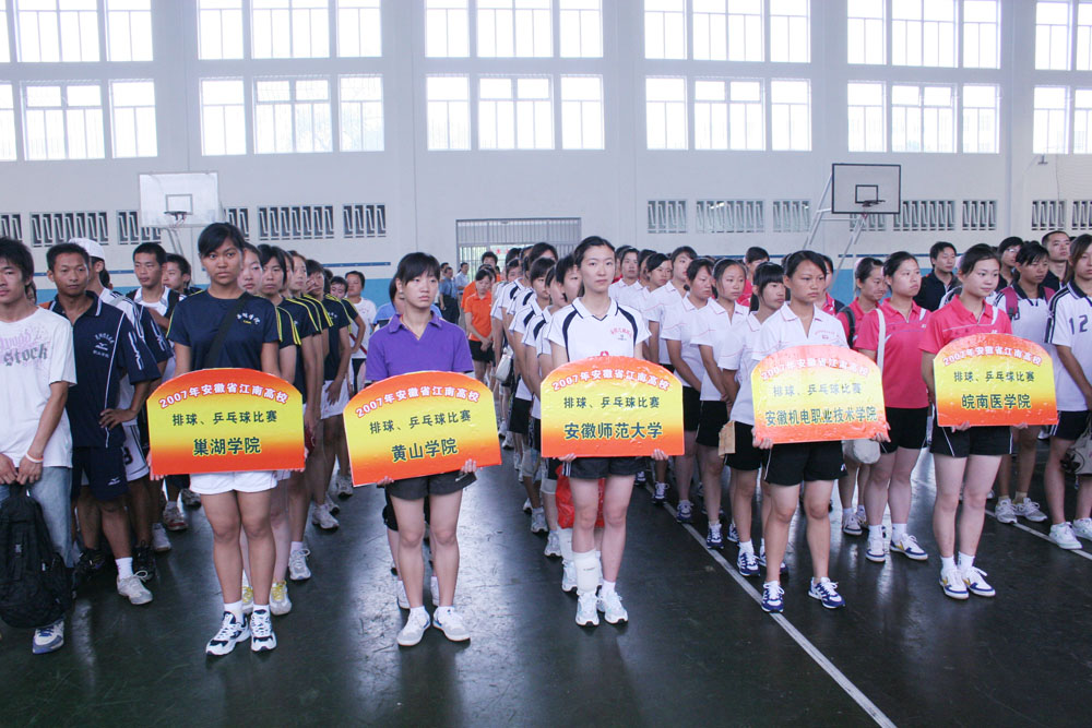 7月10日-12日,安徽省体协江南高校协作组2007年排球、乒乓球比赛同时在我校举行,并圆满结束,安徽工程科技学院、巢湖学院排球队分获男女组冠军;安徽工程科技学院、黄山学院乒乓球队分获男女团体冠军,我校学生王赦焱获得男子单打第一名。