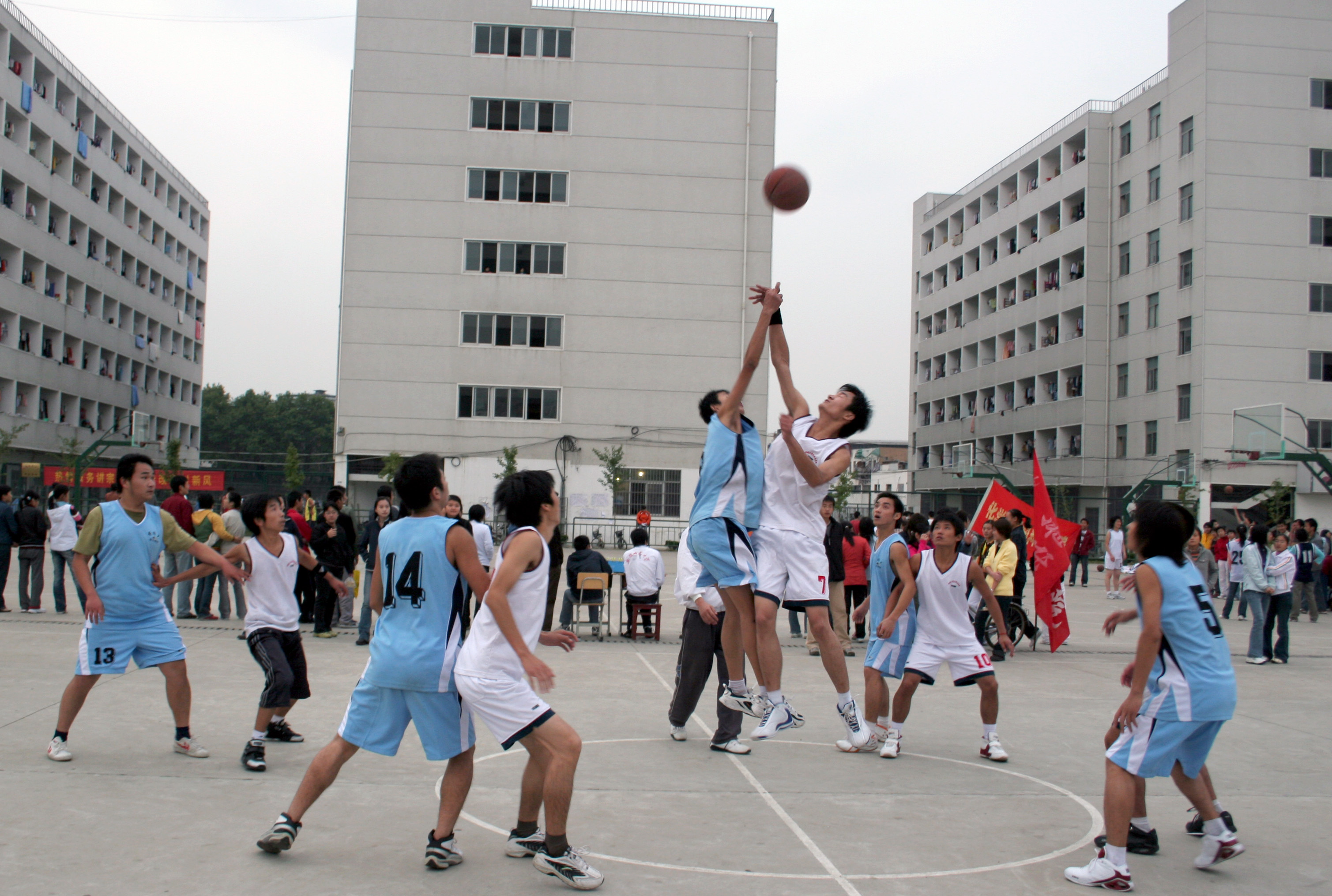 为迎接省大学生篮球联赛暨CUBA选拔赛(2007年10月),我校甲组男子篮球队和乙组男女篮球队一直顶着酷暑进行训练,为能在联赛中取得更好的名次积极准备着。