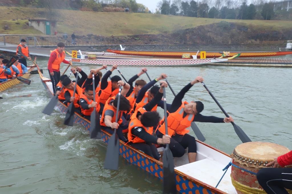 比赛当天,气温骤降,阴雨绵绵。受大风的影响,湖面激起层层浪花,风急浪高的环境和寒冷刺骨的湖水都是对龙舟队队员们体能、耐力和体力的极大的考验和挑战。我校队员们克服新老更替等困难,赛前训练有素、准备充分,临赛时蒋先军教练又进行了精心布阵、心态指导,引导队员克服恶劣环境的影响,在比赛间隔期及时点评每个人的赛中表现,每项比赛后都认真总结全队的团队配合。队员们认真执行教练的战术布置,在比赛中沉着冷静、反应迅速、齐心合力、劈波斩浪、一路向前、遥遥领先,赛出了安师大龙舟队的精神和水平。