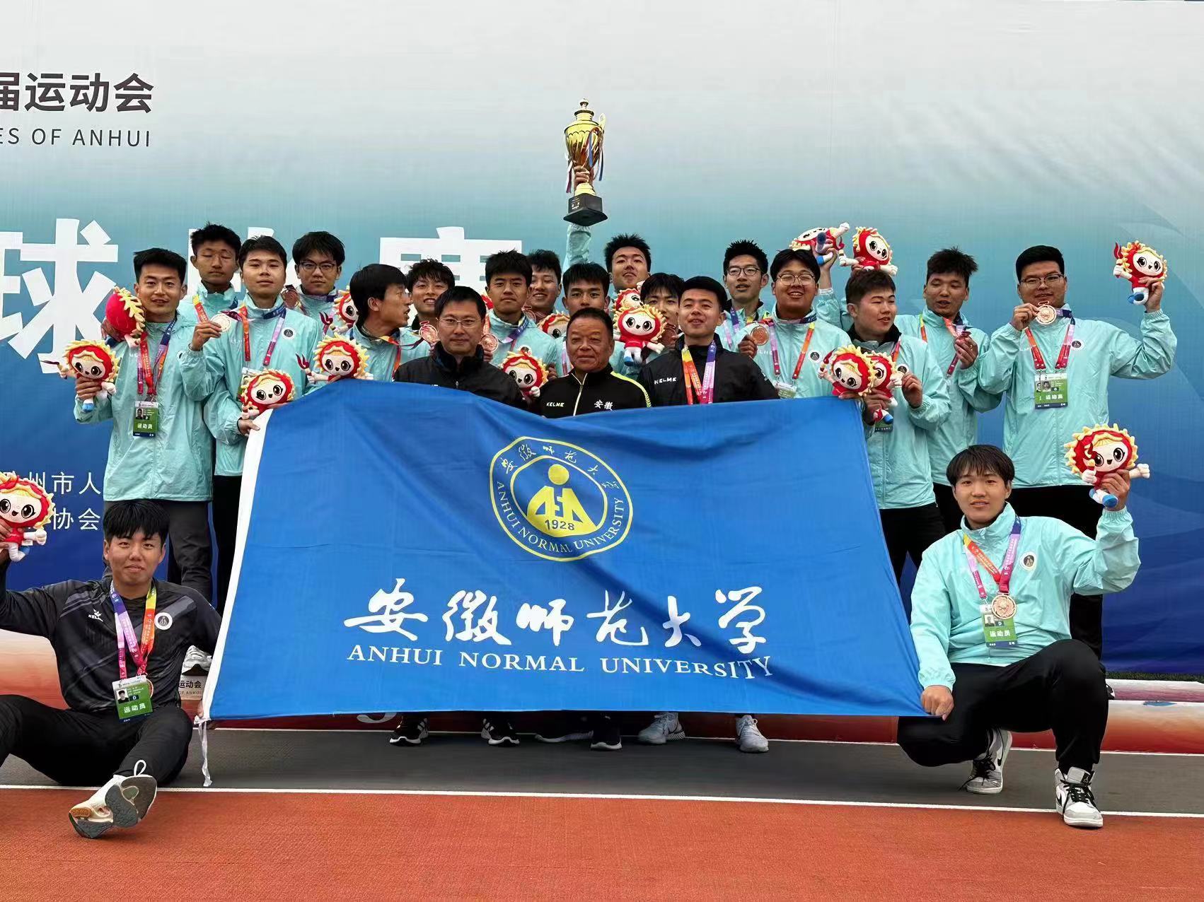 我校甲组足球健儿们在四年一届的安徽省运动会的赛场中挑战自我、奋发拼搏、遵规守纪、团结互敬,向各高校展现了师大人的良好精神面貌。