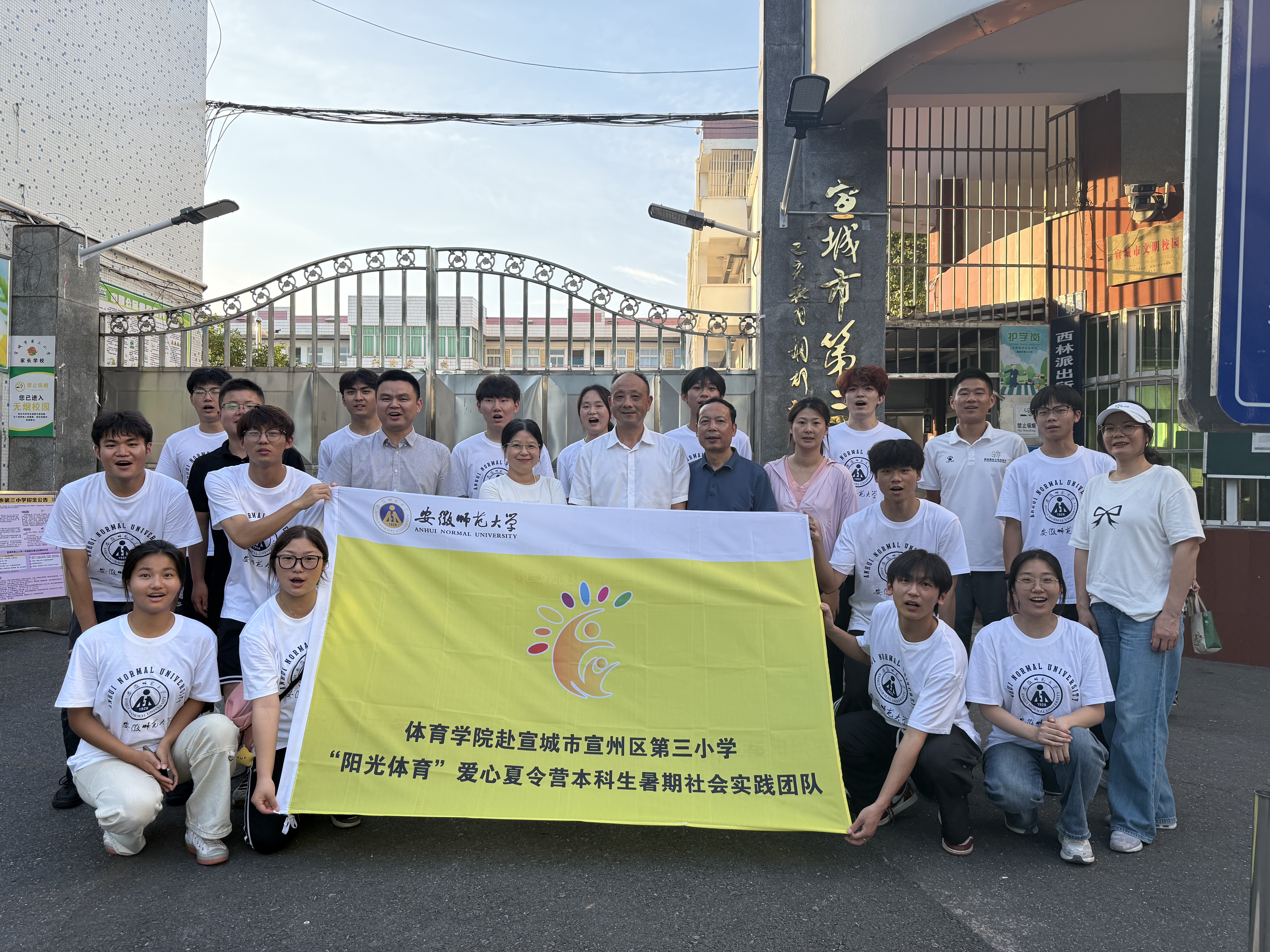 本网讯(437ccm必赢国际版)7月2日下午,437ccm必赢国际版赴宣城市第三小学“阳光体育”爱心夏令营座谈会在宣城市第三小学举行,437ccm必赢国际版党委副书记崔世兵、院团委书记朱克习、辅导员张学谦、汪冬生,宣城市宣州区教体局副局长陈玲、宣城市第三小学党总支书记刘正厚、德育副主任赵代萍、少先大队辅导员周来好及社会实践全体队员参加座谈会。