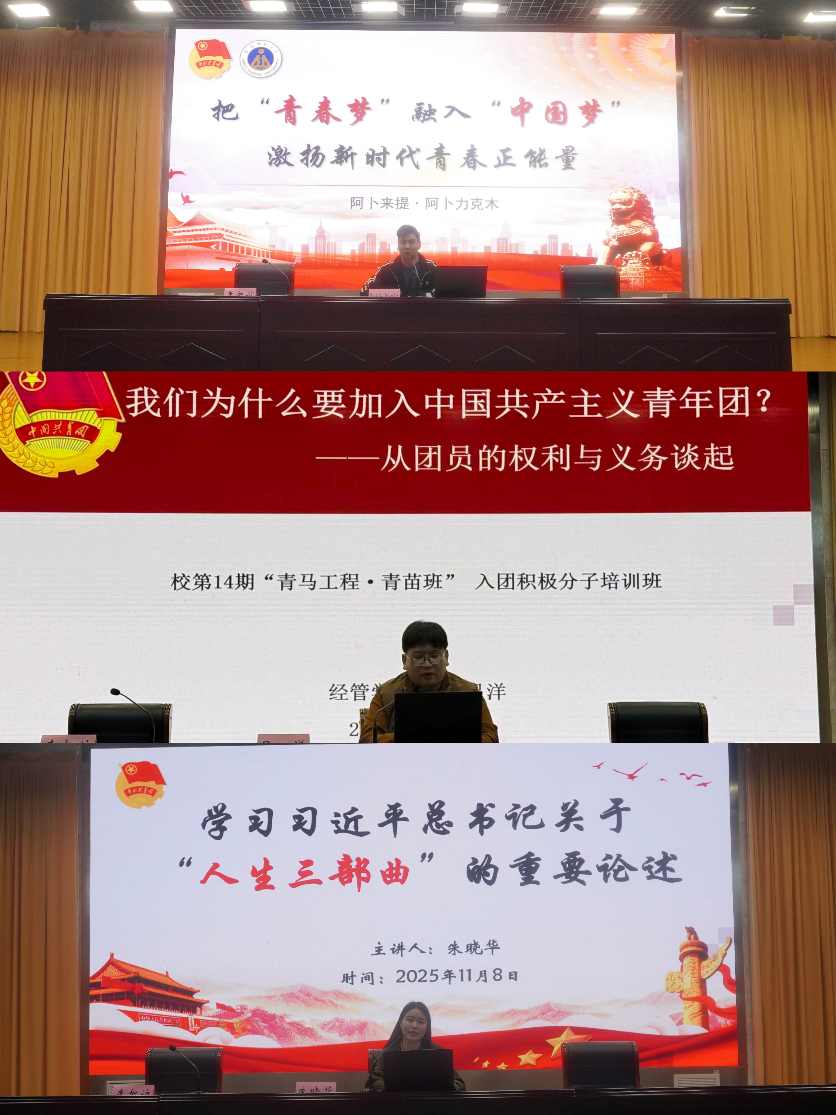 据悉,本期培训班围绕理论教育、政治认同、团员意识等方面设置了系统课程,涵盖多场专题讲座,并组织理论测试、观看《榜样》专题片、开展自主学习与读书报告撰写等环节,全面提升学员的政治素养和理论水平。