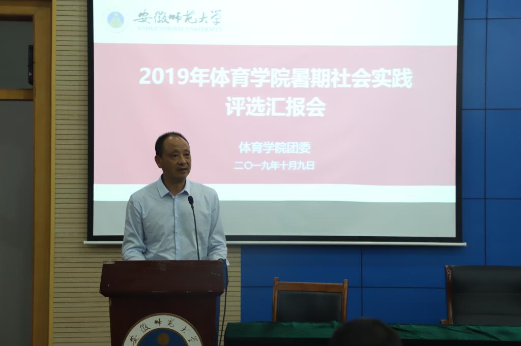 评选工作结束后,437ccm必赢国际版党委副书记崔世兵作总结发言,他首先肯定了今年我院的暑期社会实践取得了丰硕的成果,今天十三支团队的汇报都很精彩。接着指出,437ccm必赢国际版“阳光体育”爱心夏令营志愿服务活动已坚持14个年头,通过暑期社会实践,让知识和实践有机的融合,成百上千的同学得到了锻炼,也为很多贫困地区儿童特别是农村留守儿童点亮了理想之灯。最后他强调,中华民族伟大复兴的中国梦的实现和体育强国战略的实施要求我们新时代大学生有理想、有本领、有担当,暑期社会实践是受教育、长才干、树形象、作贡献的重要平台,同学们要再接再厉,今后更好地投入到社会实践中,锻炼自我、锤炼本领、实现理想。