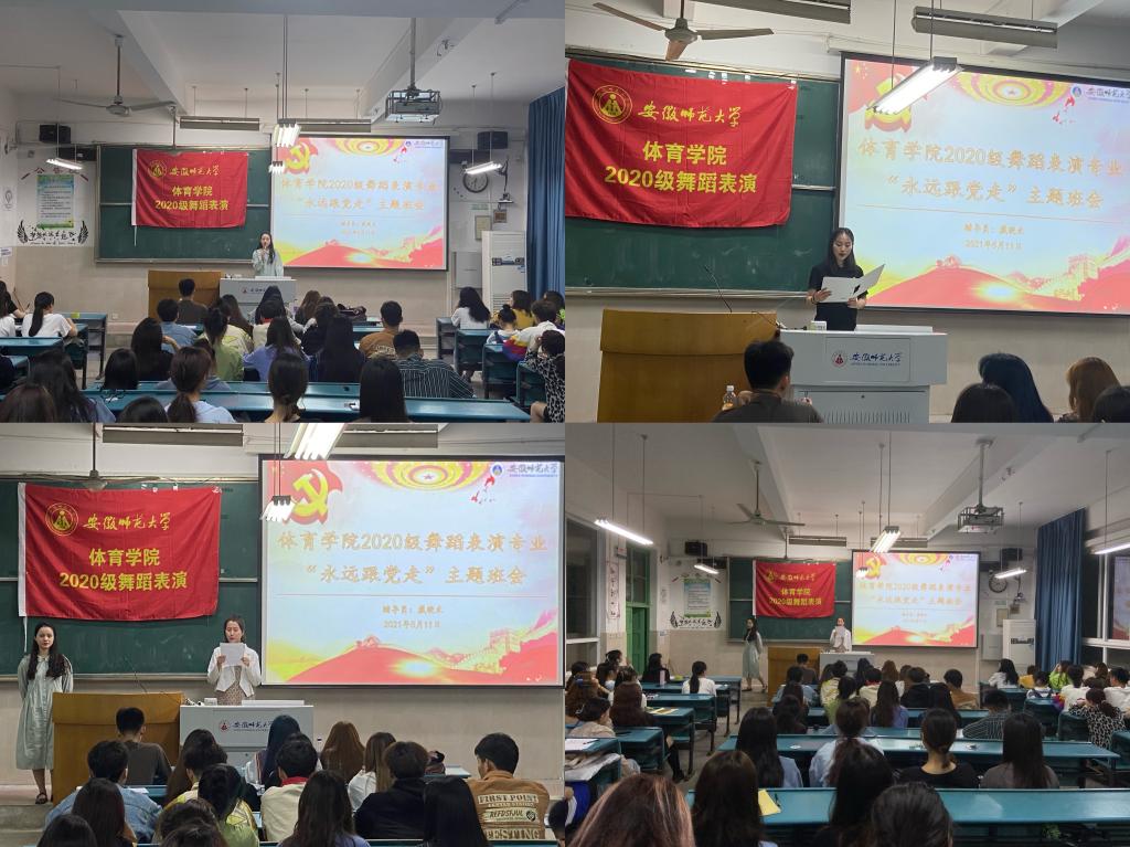 为庆祝中国共产党成立一百周年,加强大学生“学党史、强信念、跟党走”学习教育,5月11日晚上,437ccm必赢国际版2020级舞蹈表演专业在班级固定教室开展了“永远跟党走”学党史主题班会。班会由辅导员戴晓禾主持。
