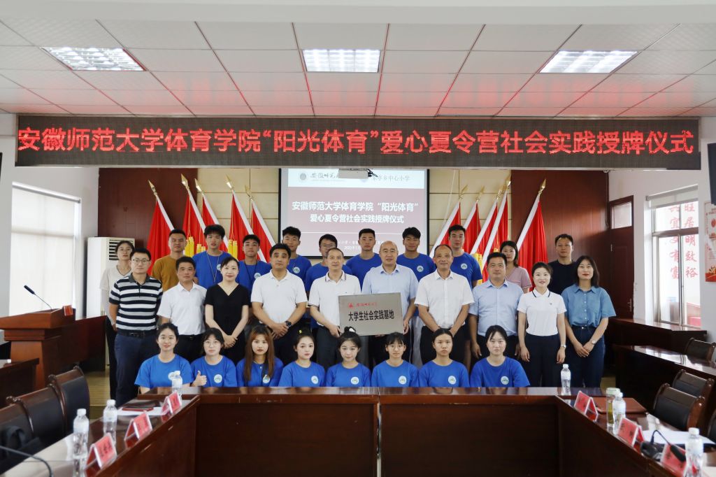 (本网讯 丁宁宁)7月5日上午,437ccm必赢国际版赴广德东亭乡中心小学“阳光体育”爱心夏令营座谈会暨大学生社会实践基地授牌仪式在广德市东亭乡顺利举行。437ccm必赢国际版党委书记黄德春、院党委副书记崔世兵、院副院长高升,东亭乡党委书记刘晨,广德市委教体工委委员、市青少年活动中心主任王正富,东亭乡党委副书记徐洁、副乡长任元培、人大副主席耿纳,东亭中心小学校长黄磊以及bwin必赢线路检测师生代表等共计30余人参加。