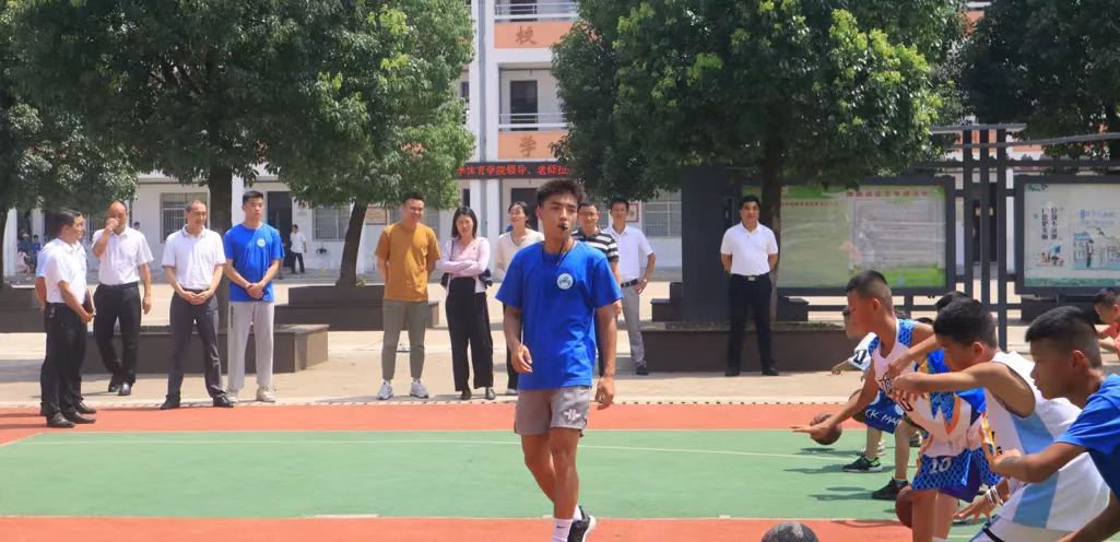 在指导老师和团队队长带领下,黄德春一行依次参观了篮球、羽毛球、啦啦操、拉丁舞、音乐课等教学班级的授课情况。