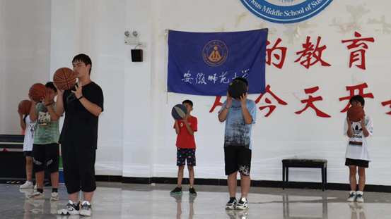 舞台上的同学们自信昂扬,篮球场上的同学们英姿飒爽,每每想起室外的篮球场训练,烈日当空,骄阳似火,可同学们热情不减,这是一场汗水与激情并存的运动,挥洒汗水,释放激情,梦想的篮筐用奋斗满贯,这是快乐的体育,是阳光的体育。