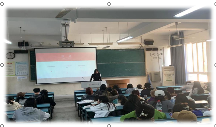 张悦悦围绕心理健康的定义、大学生心理健康的现状、缓解心理压力办法等三个方面利用PPT为大家进行了详细解读,徐梦涛就如何做到自尊、自爱、自律、自强为同学们进行了心理辅导。
