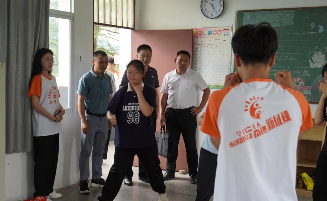 在指导老师和团队队长带领下,高守东、余涛一行参观了篮球、羽毛球、乒乓球、拉丁舞、拳击、击剑等教学班级的授课情况。