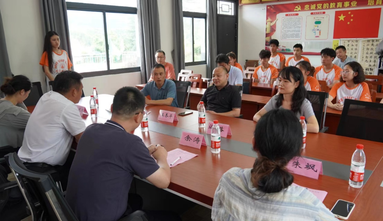 本网讯 (潘颖) 7月3日上午,437ccm必赢国际版赴新丰中心学校“阳光体育”爱心夏令营座谈会在黄山市新丰乡顺利举行。437ccm必赢国际版副院长高守东、余涛,437ccm必赢国际版辅导员朱克习、朱飒,黄山区新丰乡党委书记王东平,新丰乡乡长阎璐,新丰乡副乡长方红苑,新丰中心学校校长杜文广及支教团队成员等共计20余人参加。