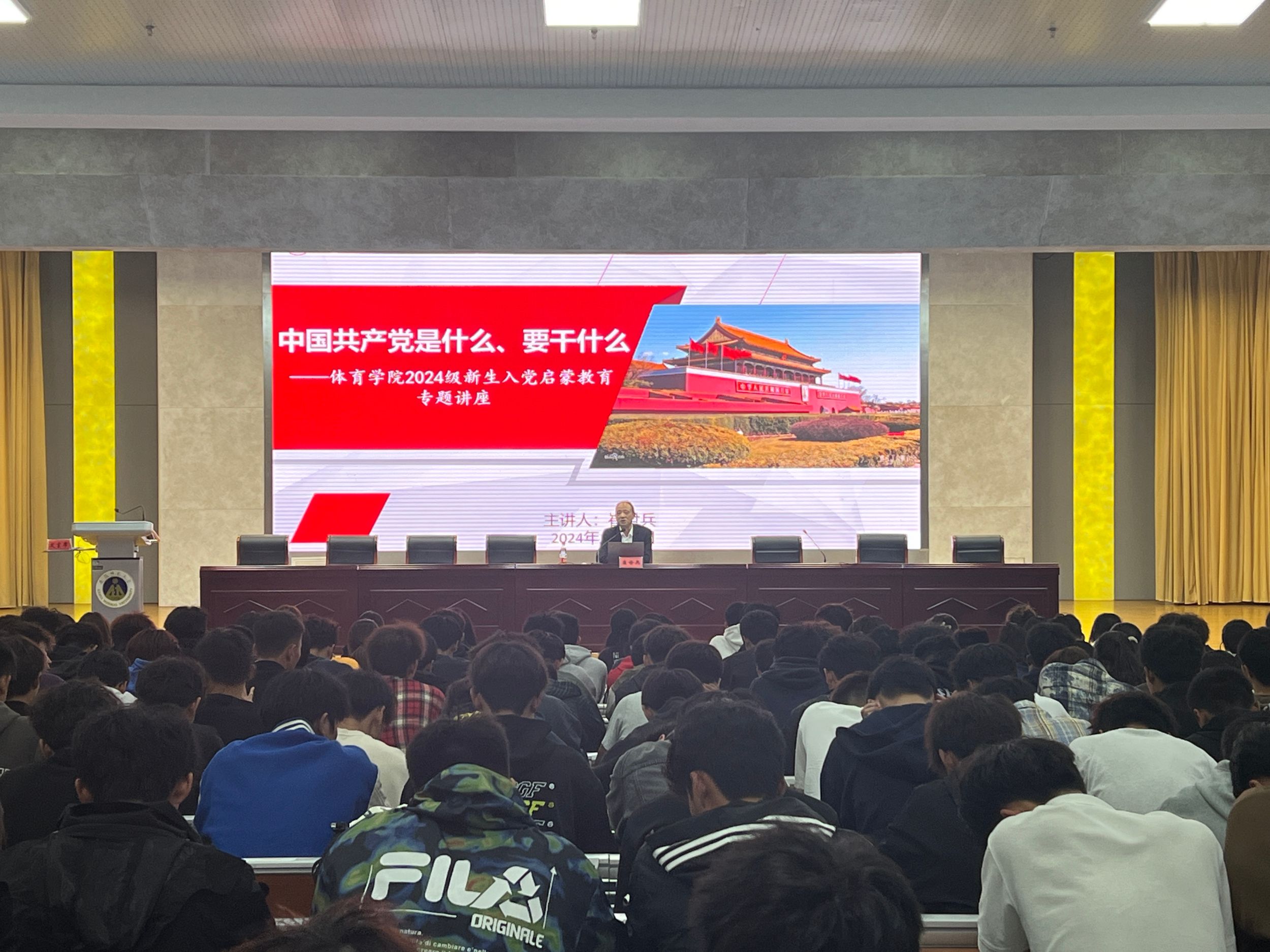 本网讯(437ccm必赢国际版)10月8日晚,437ccm必赢国际版在理科实训大楼报告厅举办新生入党启蒙教育专题讲座,全体辅导员和2024级新生参会,专题讲座由院党委副书记崔世兵主讲。