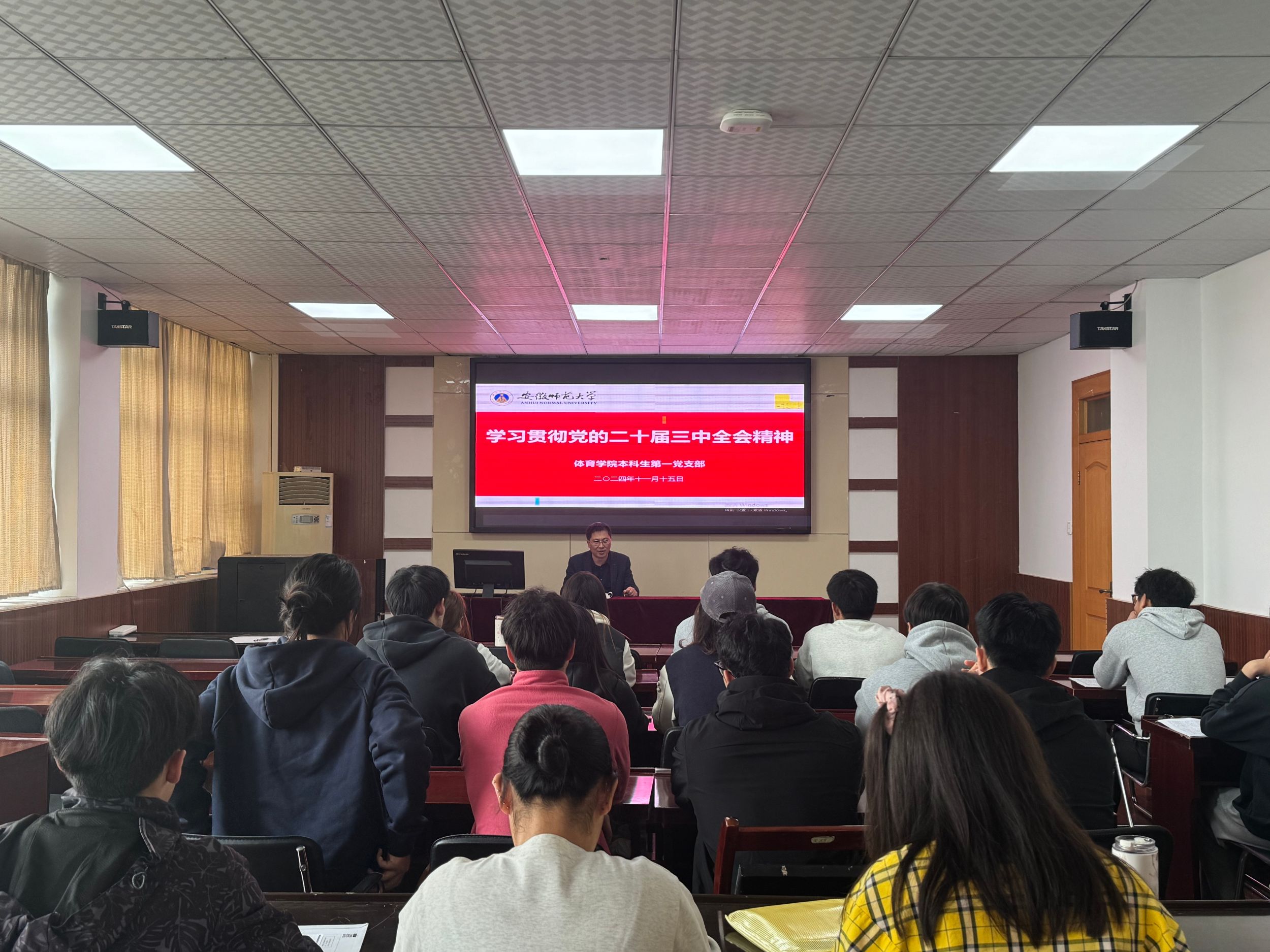 与会人员集体观看了习近平总书记在安徽考察时重要讲话精神的新闻视频。余涛讲授“二十届三中全会精神解读”专题党课,并强调全体党员同志要把学习贯彻习近平总书记考察安徽重要讲话精神与贯彻党的二十大和二十届三中全会精神紧密结合起来,发挥党员先锋模范作用,同时结合高校文化建设与改革,鼓励师生为体育文化的发展做贡献。