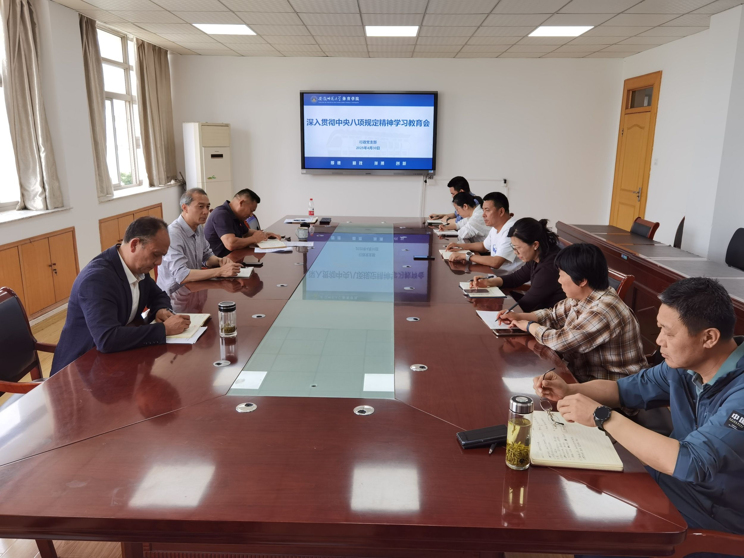 4月30日上午,行政党支部在学院3楼会议室开展深入贯彻中央八项规定精神学习教育,支部全体党员参会,会议由支部书记高守东主持。