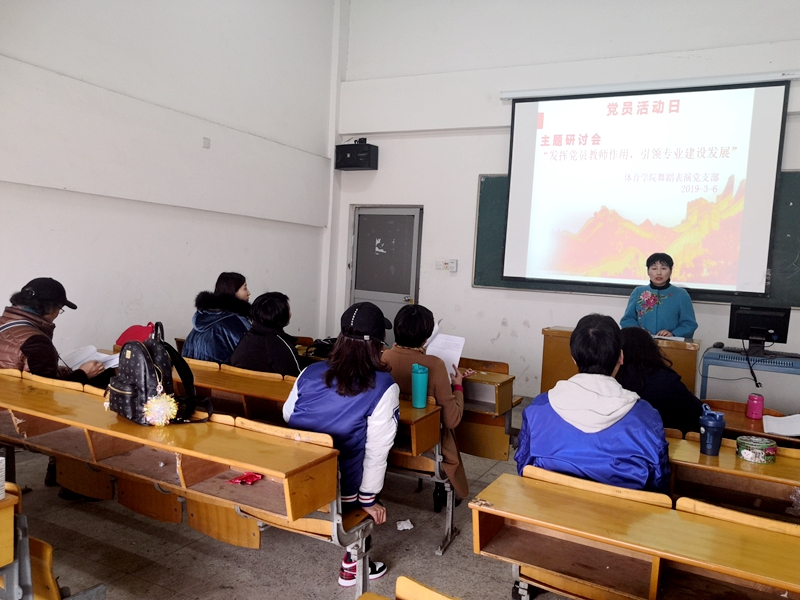 本网讯(437ccm必赢国际版 舞蹈表演教工党支部)3月6日下午,学校迎来新年开学后的第一个党员活动日,437ccm必赢国际版舞蹈表演党支部在北体育场多媒体教室举行了“发挥党员教师作用,引领专业建设发展”主题研讨会,全体党员参加了此次活动。