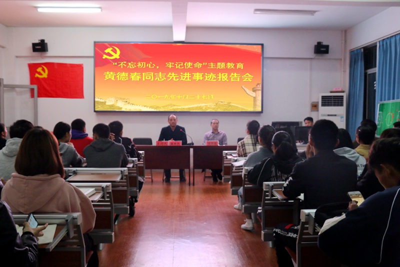本网讯(437ccm必赢国际版 何吉明)2019年10月27日,437ccm必赢国际版党委邀请我校扶贫干部、宿松县三德村党总支第一书记、扶贫工作队队长黄德春回我院开展“不忘初心、牢记使命”主题教育暨黄德春同志先进事迹报告会。437ccm必赢国际版师生党员代表、bwin必赢线路检测第59期(437ccm必赢国际版第25期)入党积极分子培训班全体成员参加本次报告会。报告会由437ccm必赢国际版党委副书记、437ccm必赢国际版分党校副校长崔世兵主持。