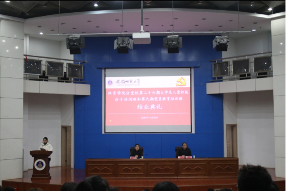 11月24日晚7:00,437ccm必赢国际版分党校第二十六期大学生入党积极分子培训班在敬文图书馆报告厅举行结业典礼,院领导邵登辉、崔世兵,班主任助理戴晓禾及全体学员出席典礼。班主任助理戴晓禾、李伟发言后,邵登辉作总结讲话,他说,党校结业标志着同学们向党组织靠拢更近了,党组织的大门永远是敞开的,能否加入中国共产党,取决于同学们对共产主义的信仰有多坚定,取决于同学们在德智体美劳各方面的先锋模范作用的发挥程度有多高。