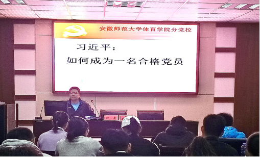 2020年11月14日,体育学院副院长钟晨以“如何成为一名合格党员”为题为学员讲授新的一课,从《中国共产党章程》中第一章展开讲述,严格对照党员标准和要求,带领党员同志从党章中认识了解党员、明确党员享有的权利及应承担的义务,以实际行动做一名“合格党员”,为党和人民的事业多做贡献,为党旗多添光彩。