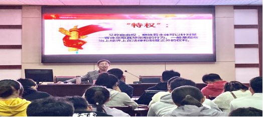 2020年11月15日,校学生处处长刘晓宇以“认真学习党章,严格遵守党章”为主题,以“特权”二字为切入点,展开有关共产党员“特权”的相关内容讲解,帮助党员同志加深对党的理解,增强党性修养,强化宗旨意识,争当合格党员。