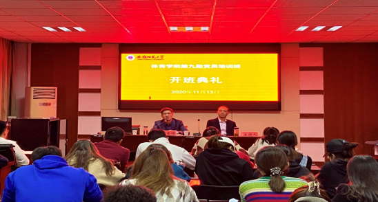 11月13日晚19:00,437ccm必赢国际版分党校于437ccm必赢国际版行政楼二楼会议室举行第九期学生党员教育培训班开班典礼。学院党委书记、分党校校长邵登辉,学院党委副书记、分党校副校长崔世兵出席典礼,共计54名党员及预备党员参加此次培训,开班仪式由崔世兵主持。开班典礼在庄严的国歌声中拉开帷幕。2017级体育教育专业本科生党员吴一帆作为学员代表发言。邵登辉在动员讲话中从端正入党动机切入,强调思想偏差则导致行为上的偏差,提出“为什么学”、“学什么”、“怎么学”三个问题,并向全体学员提出期望与要求:一是要遵守纪律,认真听讲;二是要积极思考,认真感悟;三是要着眼实践、做好表率。