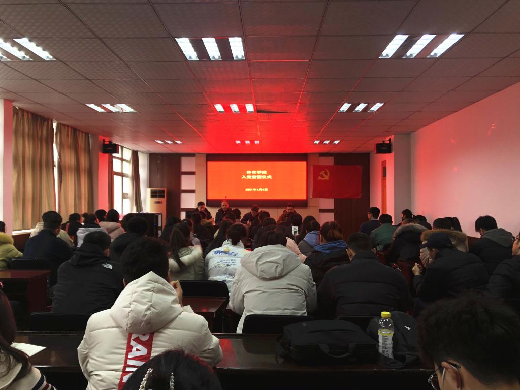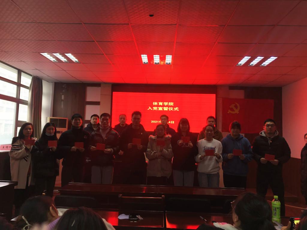 大会在庄严的国歌声中拉开帷幕。崔世兵宣读了学院党委关于同意接收张焱晨等78名同学为中共预备党员的意见,2018级运动训练专业何子源同学代表参加宣誓的预备党员发言。邵登辉、崔世兵、张学谦为预备党员颁发党徽和党费证,张学谦带领全体新发展党员面向党旗,庄严宣誓。