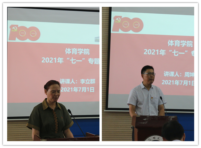 会上,学校“优秀共产党员”李立群、周坤分别以“担当作为为党育人”和“为人民服务”为主题,给全体师生党员上了“七一”专题党课。学院党委书记邵登辉带领党员重温入党誓词、新党员入党宣誓,铿锵有力向党组织郑重承诺。
