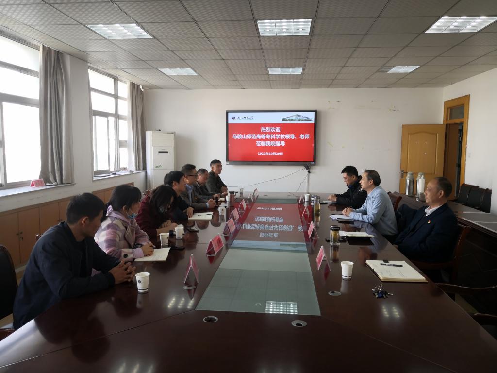 本网讯(437ccm必赢国际版 汪暠)近日,马鞍山师专校党委委员、副校长李胜率队来我院考察,就党建工作、公共体育教学等方面进行了深入交流讨论。437ccm必赢国际版党委副书记(正处)黄德春、学院党委副书记崔世兵、副院长余涛、学院组织员汪暠陪同考察并参加座谈交流。