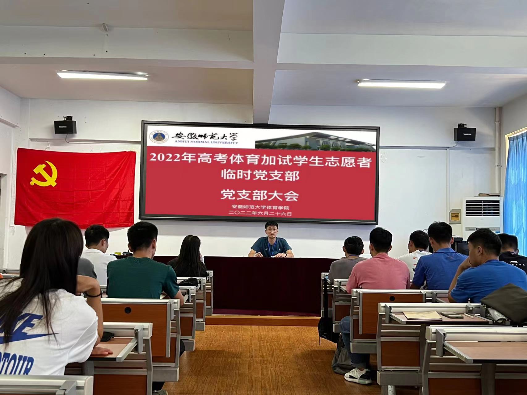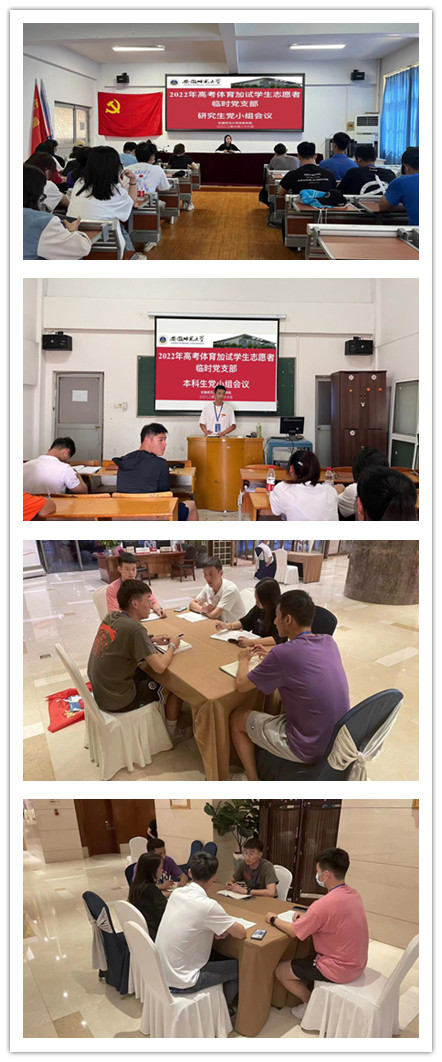 本网讯(437ccm必赢国际版 邓文涛)响应党的号召,做新时代青年人。2022年安徽省高考体育统考于6月18日—30日在bwin必赢线路检测437ccm必赢国际版北侧田径场成功举办。考试期间,437ccm必赢国际版党委组织学院本科生、研究生党员成立了2022年高考体育加试学生志愿者临时党支部,服务体育加试工作。
