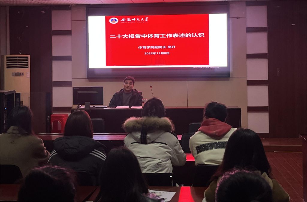 会议开始,高升以“党的二十大报告中体育工作表述的认识”为主题讲授党课,阐述了中国的体育强国之路的脉络,他还就党的二十大报告中关于教育和体育方面的内容谈了自己的理解与感悟,勉励同学们要立志做有理想、敢担当、能吃苦、肯奋斗的新时代好青年。