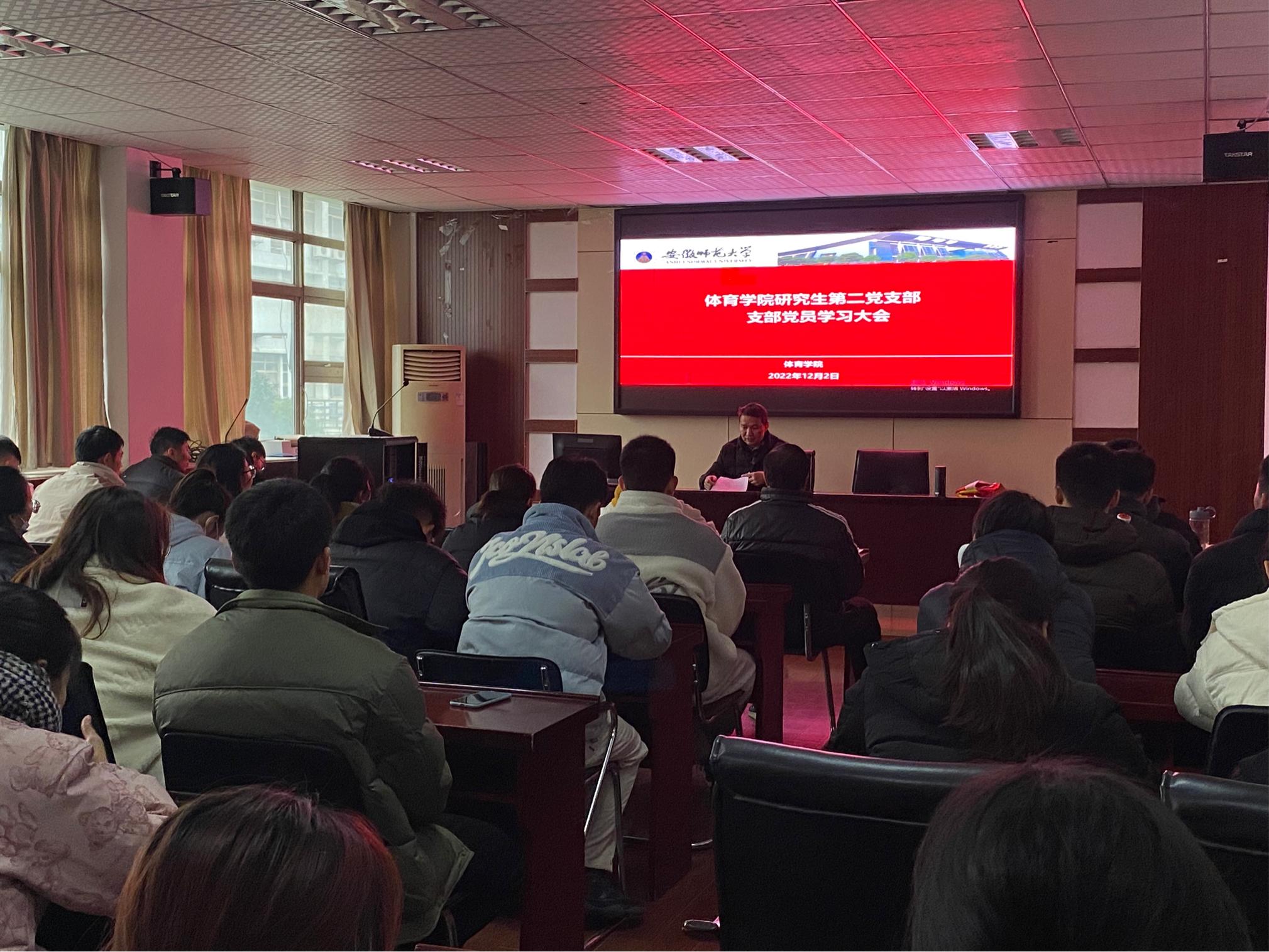为深入学习贯彻党的二十大精神,2022年12月2日下午,437ccm必赢国际版研究生第二党支部在437ccm必赢国际版二楼会议室召开了学习党的二十大精神专题支部大会,院党委委员花家涛参会并讲授学习党的二十大精神专题党课,支部全体成员参加会议。会议由支部书记蒋先军主持。