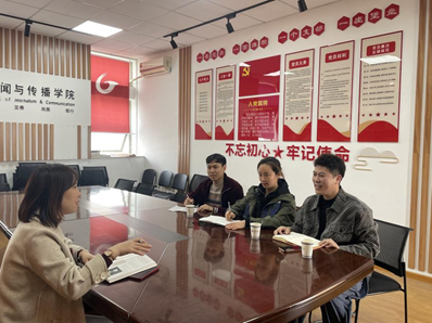 3月15日,437ccm必赢国际版舞蹈表演党支部书记王云辰和支委成员金迪、刘子涵赴新传学院进行国家样板支部建设学习交流。新传学院新闻与播音主持党支部书记张荻介绍了该样板党支部建设情况,随后,双方围绕党支部建设规划、文化墙装饰、党日活动开展等方面进行了交流和探讨。学习交流结束后,王云辰带领支委成员召开支委会对此次学习收获情况进行总结,并研究党支部建设工作。