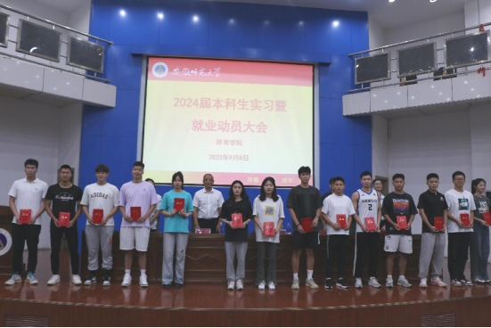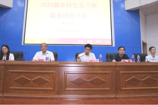 本网讯(437ccm必赢国际版)新学期伊始,毕业班学生即将阔步迈向学习生涯重要一环——本科生实习,为调整学生心态,打牢思想底线,系好走向社会的第一颗“纽扣”,学院于本月8日下午开展2024届本科生实习暨就业动员大会,437ccm必赢国际版院长金涛、党委副书记崔世兵、副院长岳建军、休闲体育专业宣海德老师、实践教学秘书潘梦秋以及各专业实习小组指导教师参加大会。