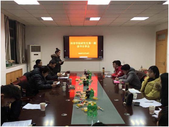 12月10日晚,由437ccm必赢国际版研究生会主办的首届读书分享会在花津校区体院行政楼三楼会议室顺利举行。437ccm必赢国际版副院长高升院长、研究生导师岳建军、花家涛老师出席本次活动并且担任评委。该活动面向研一研二学生通过投稿筛形式选出11名同学参加本次活动。此次读书分享会以茶话会的形式,桌上摆有零食和饮料,参赛同学与老师围坐圆桌分享自己推荐的书籍,活动在轻松愉悦的气氛中展开。