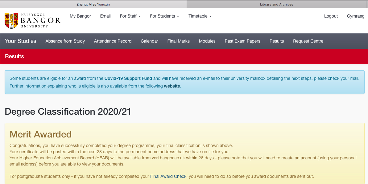 张永新、颜悦以出色的专业知识和英语功底,于2019年8月被英国班戈大学艺术、人文和商业学院(College of Arts, Humanities and Business)体育历史、文化和传媒专业(MA in Sport History, Culture & Media)录取为全日制硕士研究生,且都获得4000英镑奖学金。两位同学勤奋刻苦,克服了新冠疫情等一系列不确定因素带来的困难,最终以优异的成绩毕业。