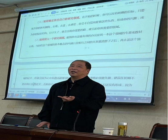 11月2日上午8:30分,437ccm必赢国际版为了提高研究生新生的学术能力、树立正确的学术思想、规范学术行为、浓厚学术氛围,在校财务处二楼报告厅成功举办了关于2022级硕士研究生培养的学术报告会,邀请了437ccm必赢国际版退休教师张振华教授为同学们作学术报告。此次报告会由蒋先军老师主持,2022级专硕和学硕的全体研究生参会聆听。